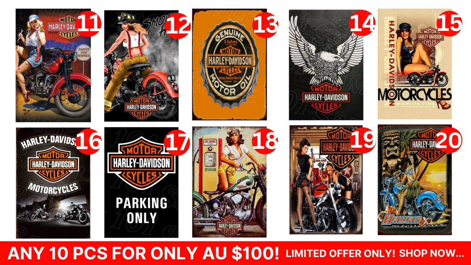 MOTORCYCLE SIGN-BULK BUY Retro/Vintage Look Metal Sign Home Wall Man Cave Garage