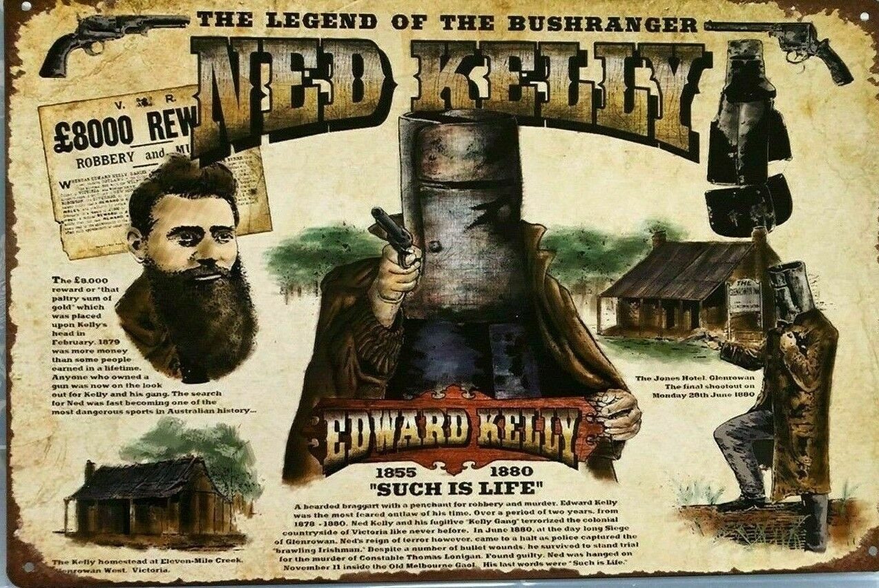 Rustic Ned Kelly Wanted Poster new tin metal sign MAN CAVE
